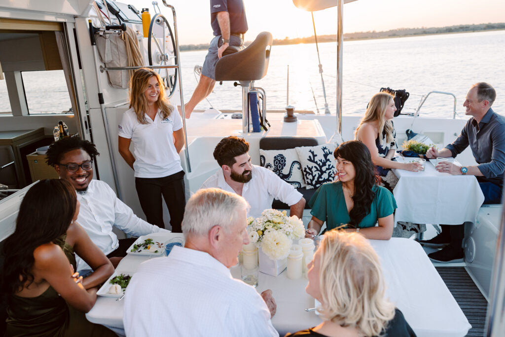 A dinner sail offers a dynamic and immersive dining experience. Instead of a single setting, the scenery evolves as you sail along the river and bayfront, showcasing St. Augustine’s historic landmarks from the water. Guests may also encounter local marine life, adding a natural element to the evening. A private chef onboard curates a personalized menu based on your group’s preferences, creating a truly elevated experience.